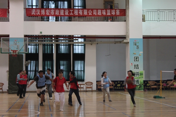 此次趣味籃球賽活動是博宏公司工會、團支部聯合組織的,有四個項目部、鄂州油廠和行政組成6支球隊參賽。每支球隊推選3男2女參賽,比賽有意識地將規則設計向女生傾斜,要求男生不能防守女生,女生必須參與進攻持球但不必遵守籃球規則。男女生“混搭”共同參與的形式增強了比賽的趣味性。