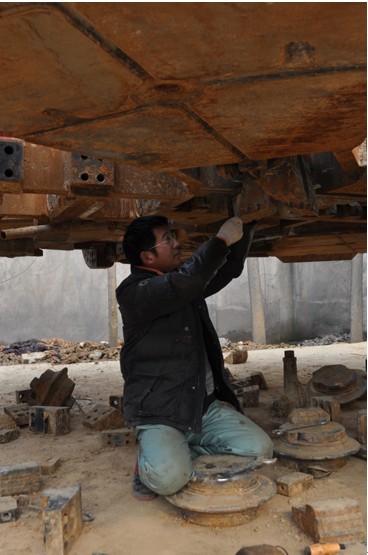 在地下1.4公里的掘進路程,讓盾構(gòu)機從開始的煥然一新到現(xiàn)在渾身都是泥土和銹跡,充滿了“奮斗”的痕跡,如同經(jīng)歷了一場大型戰(zhàn)役般,現(xiàn)在的盾構(gòu)機最需要的是休養(yǎng)和調(diào)整。據(jù)負責人李強介紹,盡管配備專門的維修保養(yǎng)人員,但在盾構(gòu)機掘進過程中,仍會出現(xiàn)正常的使用損耗,如刀盤的泡沫孔被淤泥堵塞等,只能等到盾構(gòu)機完全拆卸后才能處理。現(xiàn)在他們的主要工作就是為盾構(gòu)機去泥、除渣、除銹、刷油,維修損壞部件,進行例行保養(yǎng)。