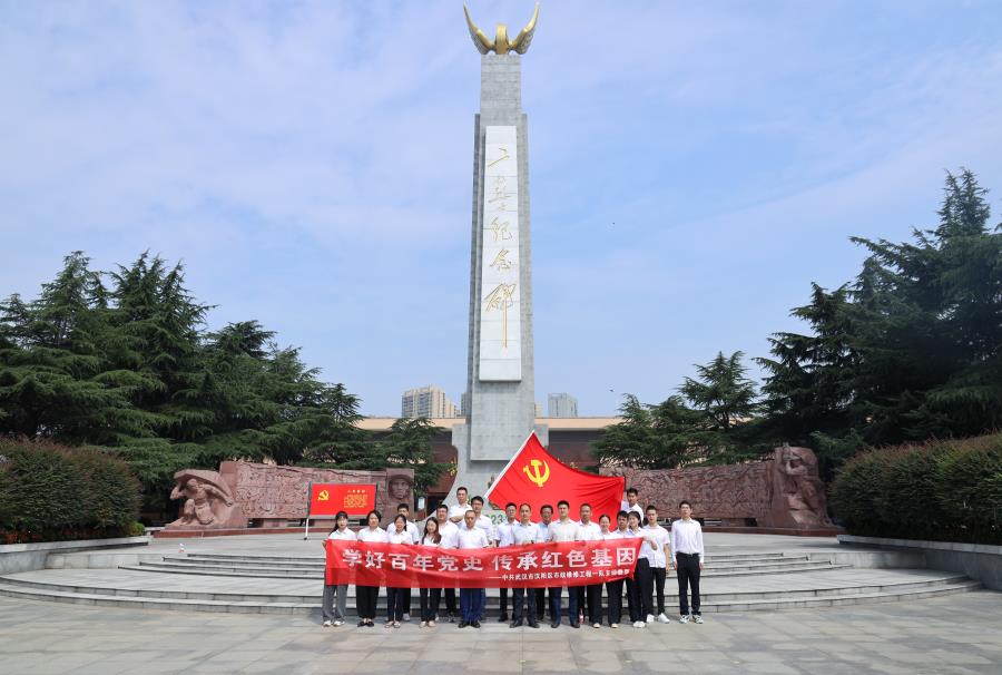 松柏環抱、綠蔭滿園、安靜莊嚴,“二七烈士紀念碑”碑頂飾以展翅欲飛的大鵬飛輪,仿佛訴說著先烈喋血的悲壯,訴說著中國鐵路工人在革命斗爭中的堅強不屈,英勇戰斗。6月29日,漢陽市政維修一隊黨支部組織全體黨員參觀了“武漢二七紀念館”,慶祝建黨百年之際追尋紅色記憶,緬懷革命先烈。