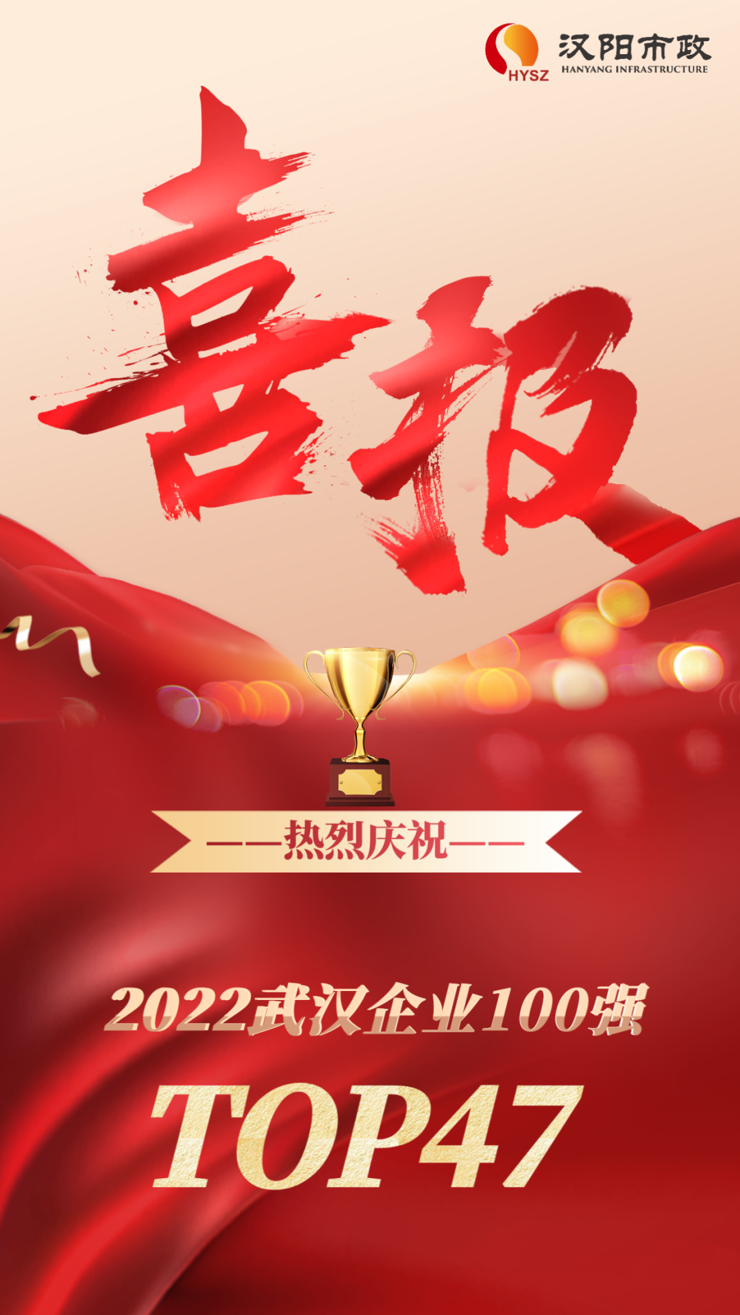 11月10日,《2022武漢企業(yè)100強(qiáng)、制造業(yè)企業(yè)100強(qiáng)、服務(wù)業(yè)企業(yè)100強(qiáng)分析報(bào)告》正式發(fā)布!漢陽市政榮登武漢企業(yè)100強(qiáng)榜單47位,相較上年再進(jìn)2位!