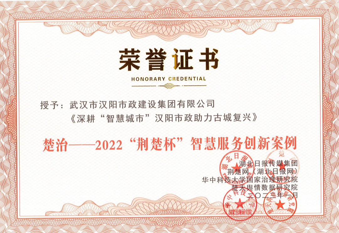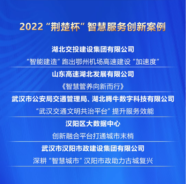 2月16日,由湖北日報傳媒集團主辦,荊楚網(湖北日報網)、華中科技大學國家治理研究院和楚天輿情數據研究院承辦的“楚治——2022‘荊楚杯’社會治理創新十大案例”公布獲獎名單,由漢陽市政申報的漢陽智慧城建一體化平臺項目案例被評選為智慧服務創新案例。