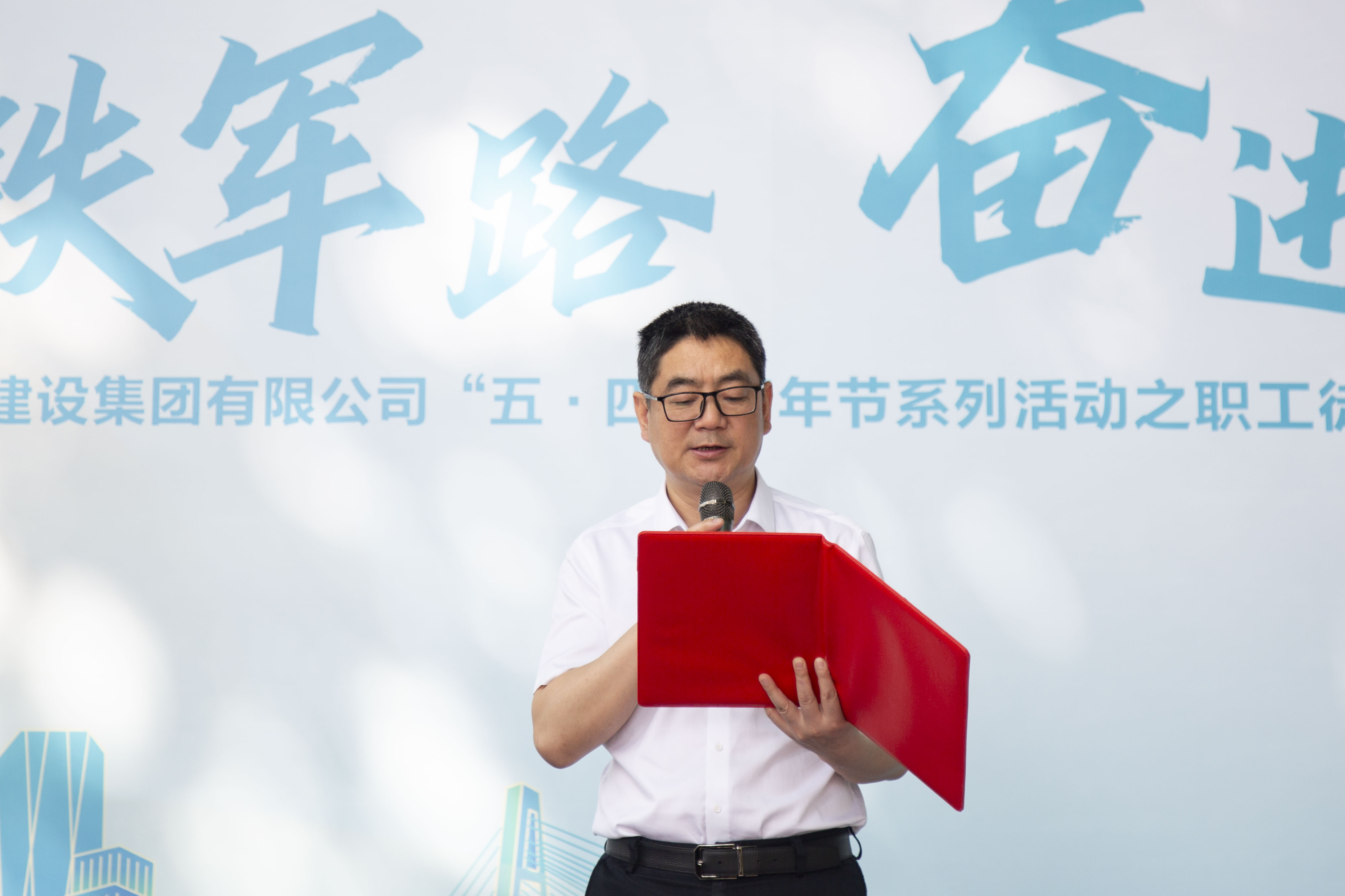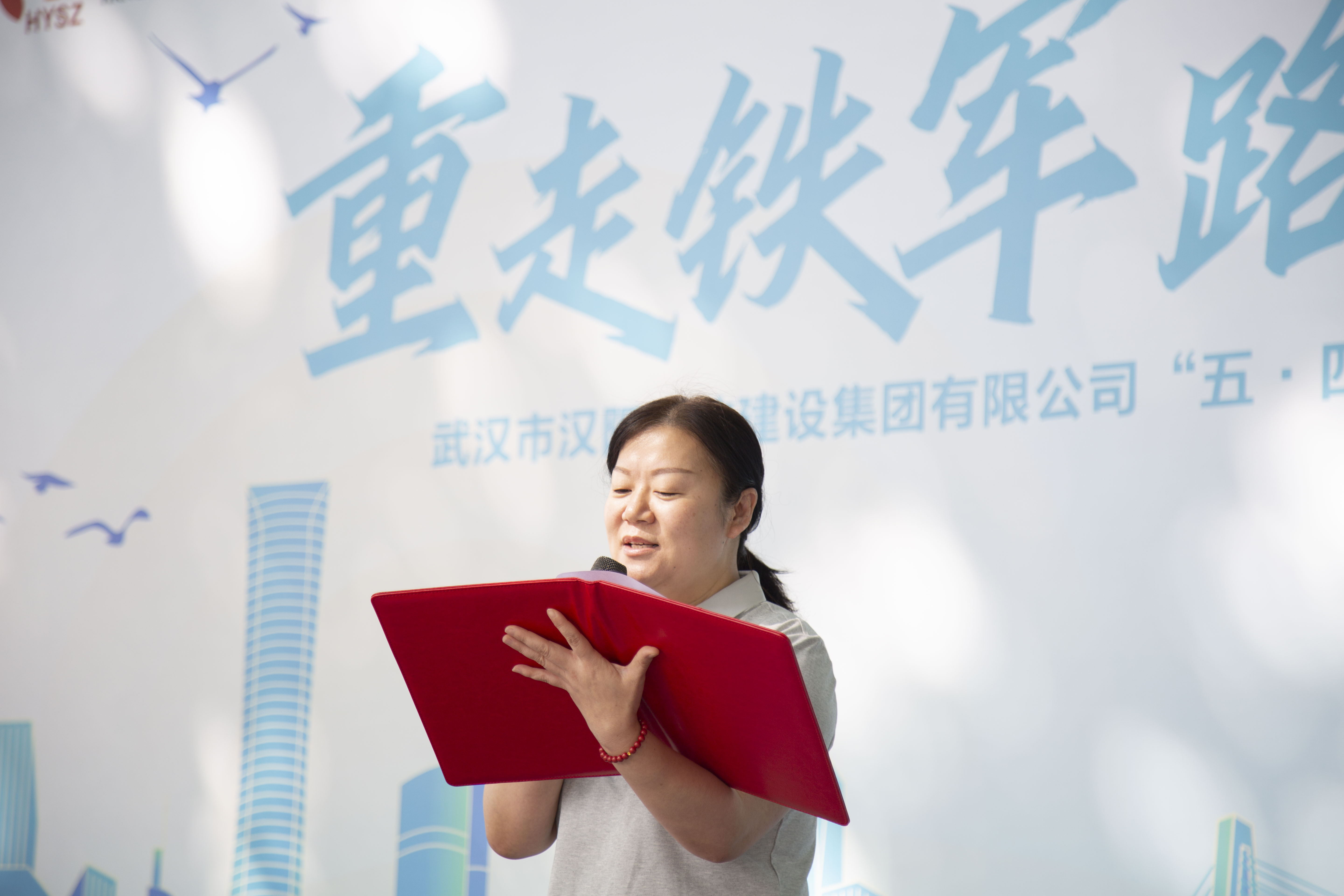 漢陽市政博宏建設黨委書記、董事長兼總經理鄒勇,代表勞動競賽參賽單位表態發言。