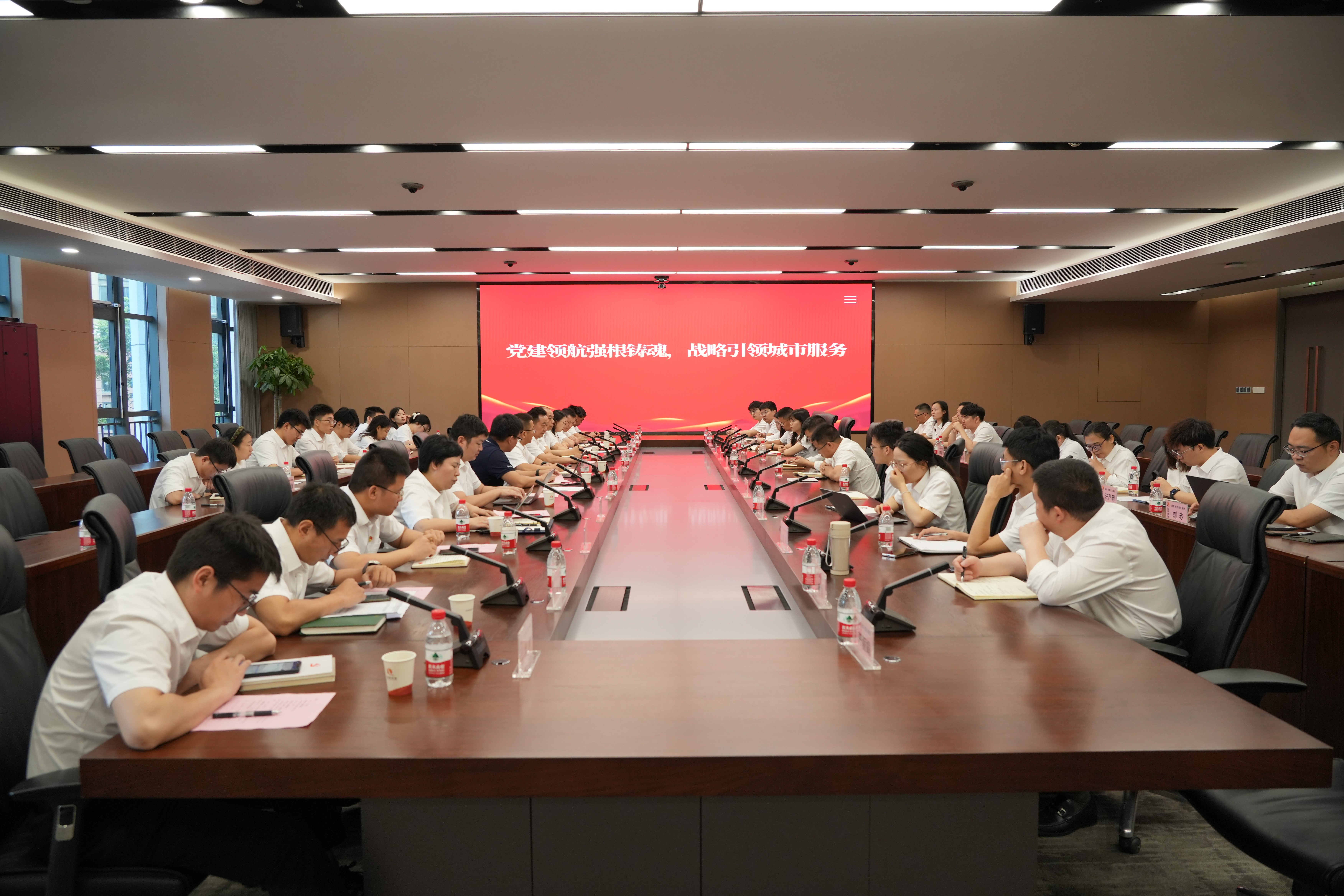 為了更加全面了解城市服務板塊發展,推進戰略關鍵任務承接落地,參會人員共同觀看城市服務相關業務宣傳片。