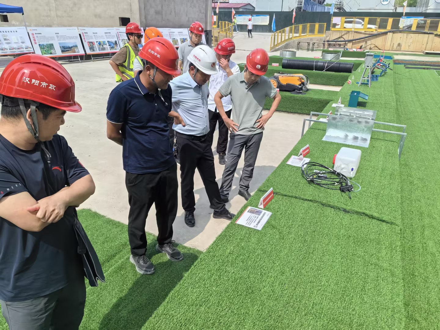 演練比賽結(jié)束后,與會(huì)人員現(xiàn)場觀摩了漢陽市政集團(tuán)在標(biāo)準(zhǔn)化、工藝、小型用具、設(shè)備等方面的創(chuàng)新亮點(diǎn)措施。大家紛紛表示,將亮點(diǎn)管理經(jīng)驗(yàn)和做法帶回去,打造精品工程,傳承工匠精神。