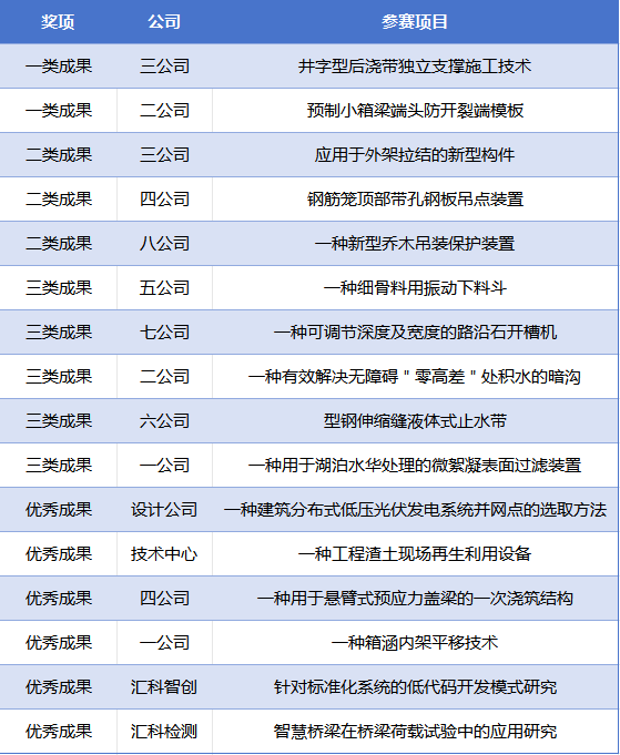 根據現場評審專家評分,井字型后澆帶獨立支撐施工技術”和“預制小箱梁端頭防開裂端模板”兩個項目分別獲得2024年度漢陽市政“天創杯”微創新大賽一類成果。此外,大賽還評選出二類成果3項、三類成果5項、優秀成果6項以及優秀組織獎。